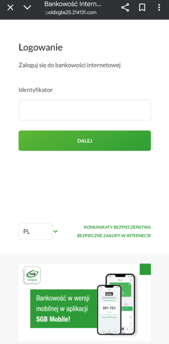 Celem ataku jest wyłudzenie środków dostępu do Bankowości Internetowej za pomocą fałszywych stron, które mogą przypominać strony internetowe innych banków.