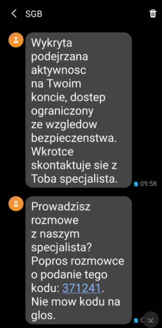 Coraz częściej do naszych klientów trafiają fałszywe wiadomości SMS, w których oszuści podszywają się pod SGB.